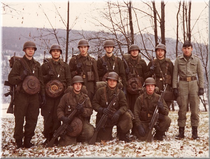 Ich übernehme hier einmal eine persönliche Erinnerung von unsererem Facebook-Profil "kurhessenkaserne.de" und präsentiere damit meine damalige Gruppe, die 1. Gruppe (1. Zug) der Ausbildungskompanie 3/2 beim Fototermin, wenige Tage nach dem Gewinn des "Bramwald-Pokals I/1969" (Marschwettbewerb der Kompanie).