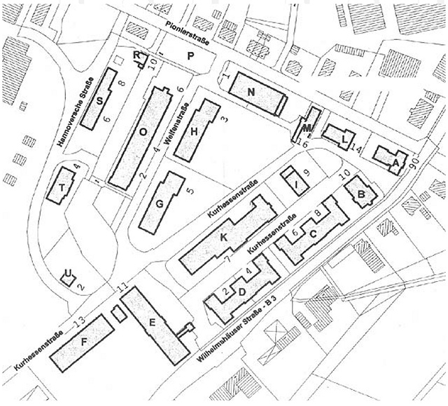 Lage- und Belegungsplan der Kurhessenkaserne zu Garnisonszeiten