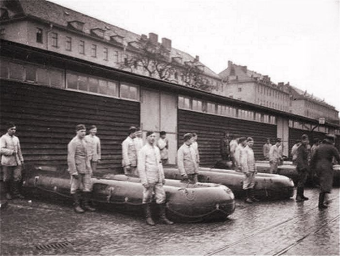 Auf dem Wasserübungsplatz. Im Hintergrund Gebäude der Gneisenau-Kaserne