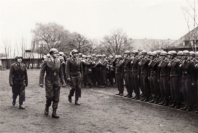 Bataillonsappell. Kommandeur PzPiBtl 5, OLT Heinrich Thünemann, schreitet die Front ab