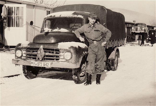 Versorgungsfahrzeug Opel-Blitz auf dem Wasserplatz, 1958